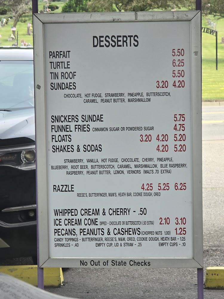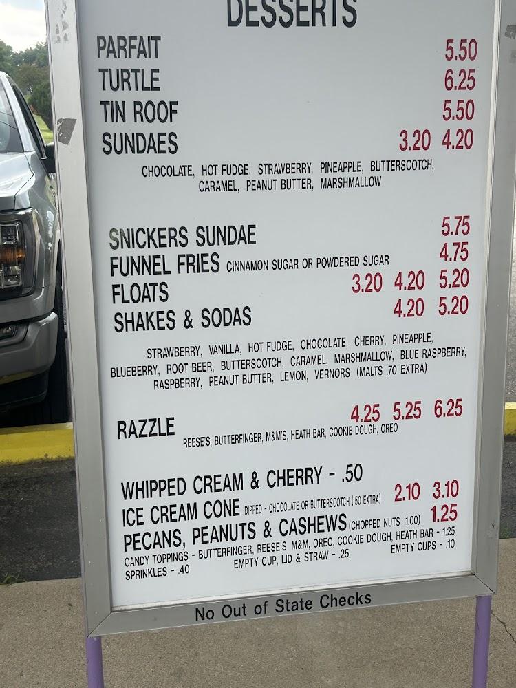 Side dishes like cheese fries and sour cream & chive fries elevate the dining experience. Burgers add a heartiness to the menu, while ice creams and milkshakes provide delightful dessert options. Each meal offers comfort at an affordable price, making it accessible for everyone.